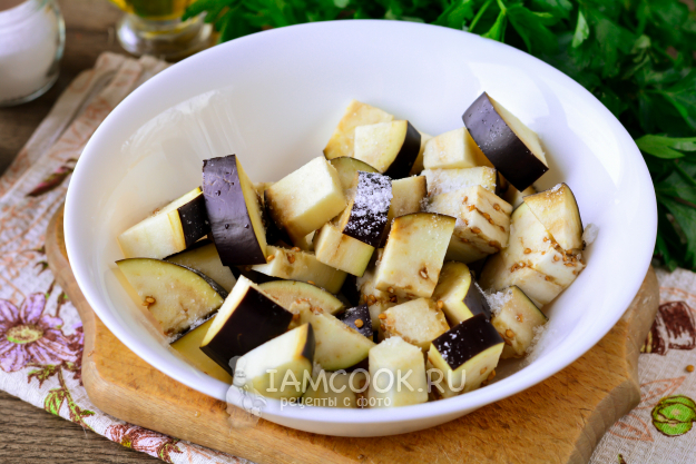 Сложите овощи в миску, хорошо посолите и оставьте на 10-15 минут. Затем слегка отожмите, уйдет горечь.