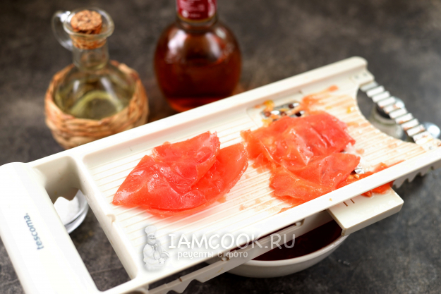 Помидоры разрежьте на четвертинки, мякоть натрите на крупной терке, кожуру выбросьте.