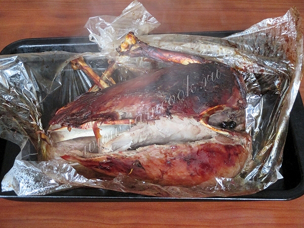 Перед запеканием разделайте тушку на грудку и окорочка. Соусы и гарниры к запеченному тетереву подбирайте по своему вкусу. Мне понравился недавно увиденный у подруги соус из хурмы с голубым сыром.