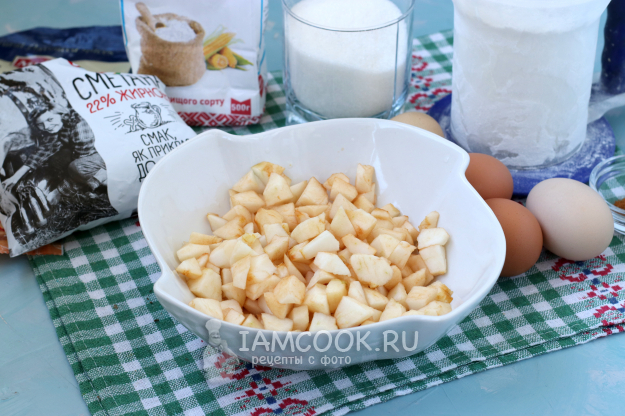 Для приготовления яблочной шарлотки со сметанным кремом подготовить из списка необходимые ингредиенты.