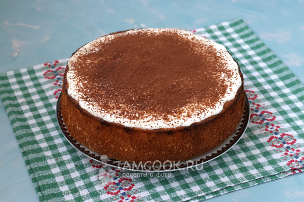 Шарлотку перевернуть на тарелку, снять пергамент и смазать верх сметанным кремом. Через ситечко просеять сверху какао.