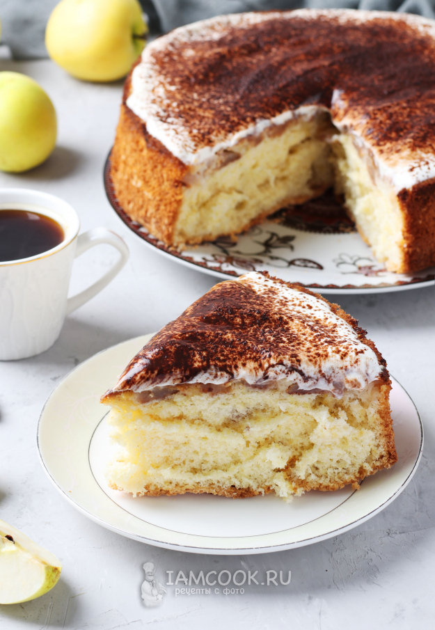 Разогреть духовку до 170 градусов и выпекать шарлотку 35-40 минут. Готовность проверить с помощью деревянной шпажки. Остудить пирог на решётке.