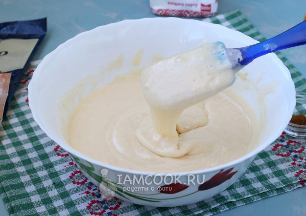 Тесто должно получиться кремообразным, плавно стекающим с лопатки.