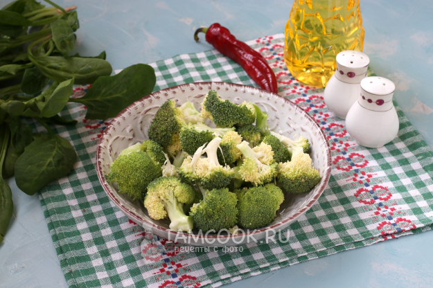 Капусту брокколи промыть водой и разобрать на соцветия.