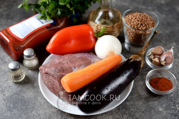 Подготовьте продукты для гуляша с гречкой. Зачистите говядину от пленок, помойте и обсушите насухо. Для гуляша хорошо подходит лопатка, поскольку задняя часть совсем долго готовится. Лук, морковь и чеснок почистите, помойте со всеми овощами.