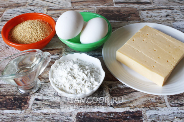 Готовим продукты для сырных палочек в панировке. Сыр выбирайте с большим процентом жирности, который при нагревании плавится. Можно использовать моцареллу. Также лучше сразу купить сыр прямоугольным или квадратным брусочком (как на фото), а не треугольничком - попросите продавца отрезать для вас его именно таким образом.
