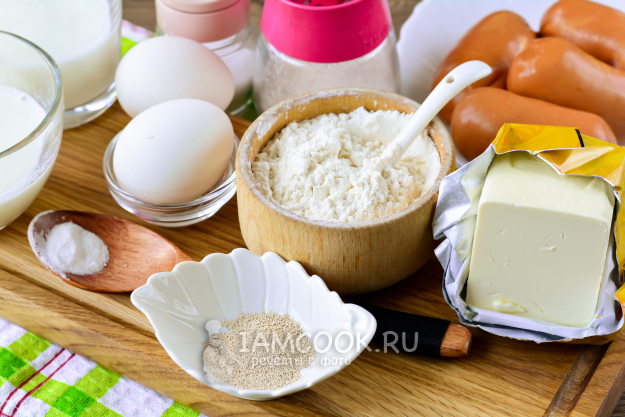 Итак, подготовьте все ингредиенты для приготовления сарделек в тесте в духовке. Заранее достаньте кефир из холодильника и оставьте его на столе, чтобы он не был холодным. Сливочное масло растопите на медленном огне или в микроволновке и остудите. Сардельки используйте те, которые вам больше всего нравятся. Я купила сардельки с сыром - они вкусные и идеально подходят для начинки.