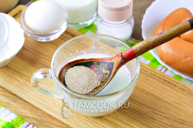 В теплое, слегка подогретое молоко всыпьте дрожжи и размешайте. Из молока отлейте 1 ст.л. и оставьте для смазывания теста. Отставьте в сторонку. Опару делать не нужно, просто пусть постоит, пока будете работать с другими компонентами.