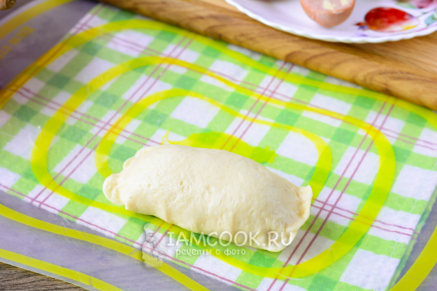 Перемешайте тесто, разделите его на средние кусочки. Каждый кусочек раскатайте тонкой прямоугольной полоской размером примерно 8х12 см.