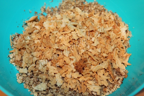 Подготовим остальные продукты. Грецкие орехи нам надо очистить от скорлупы и перемолоть.