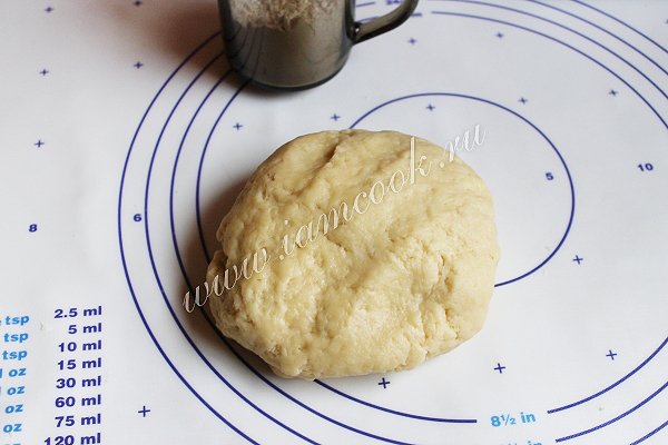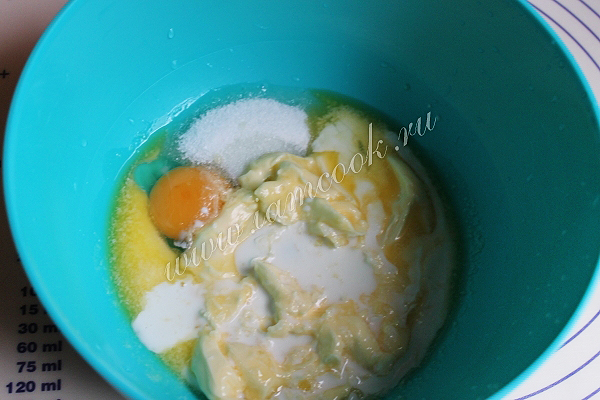 Итак, замесим тесто. Для этого возьмем мягкое масло, смешаем с яйцом, сахаром и молоком. Добавим муку и замесим тесто. У меня ушло 2,5 стакана муки. Поэтому муку добавляйте постепенно.