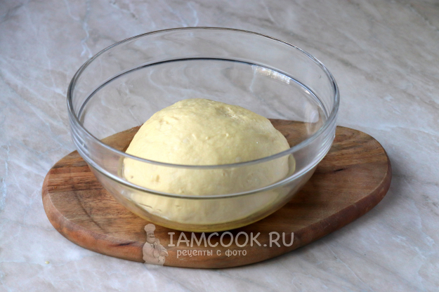 Выложите тесто в миску, смазанную растительным маслом, накройте полотенцем и оставьте в тёплом месте на 1,5 часа.