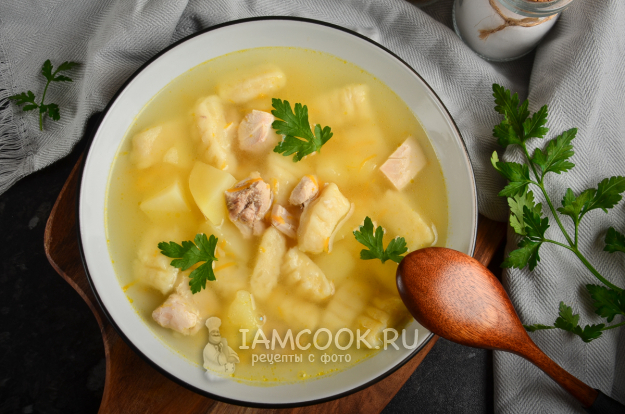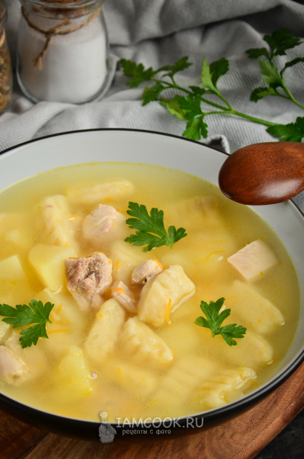 Отправьте кусочки теста в кастрюлю с супом, варите минуты 3-4, затем выключите газ и дайте супу настояться под крышкой еще минут 15.