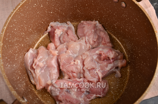 Охлажденную или размороженную курицу сложите в кастрюлю. Залейте водой и варите на тихом огне минут 20 после закипания воды. Прикройте кастрюлю крышкой.