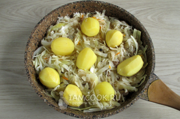 Минут через пятнадцать положите на капусту небольшие целые картофелины (очищенные!).