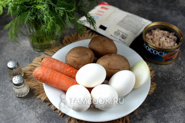 Подготовьте необходимые продукты для приготовления салат «Мимоза» на Новый год быка. Кожуру на картофеле и моркови помойте кухонной губкой под проточной водой. Выложите их и яйца в глубокую кастрюлю или казан и варите до готовности. Как правило, на яйца уходит около 10 минут, морковь готова где-то через 15, а картофель - через 15-20. Яйца сразу же выложите в холодную воду.