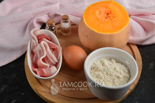 Подготовьте нужные ингредиенты для тыквенных ньокки с беконом.