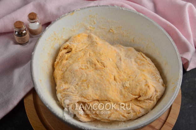 Вбейте в миску с пюре куриное яйцо, добавьте щепотку соли и муку, начинайте размешивать. Муку постепенно подсыпайте, чтобы замесить тесто.