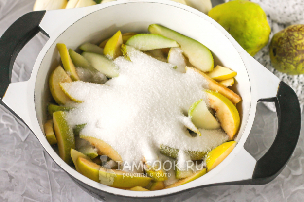 Подготовьте продукты для заготовки варенья из айвы и груши на зиму.