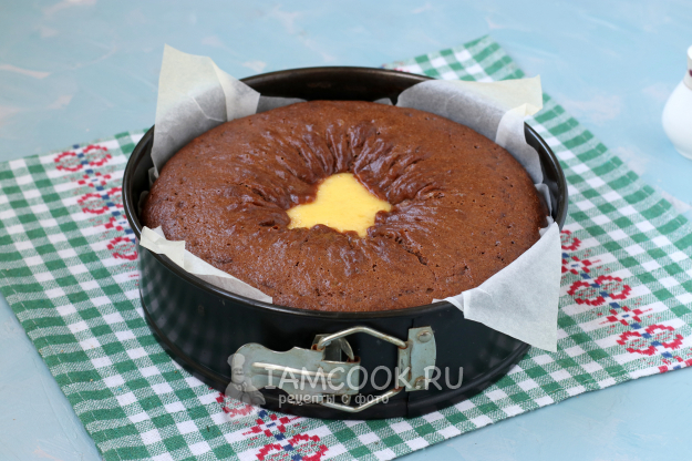 Выпекать творожный пирог «Вулкан» при 180 градусах 1 час. Готовность, как обычно, проверить с помощью деревянной шпажки - она должна выходить из теста сухой.