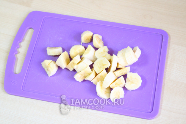В миску выкладываем кусочки одного банана и блендером пюрируем до однородности.