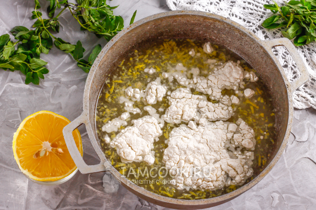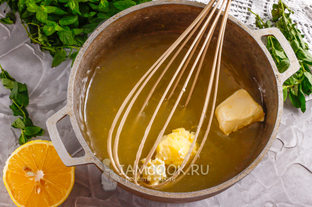 Влейте лимонный сок с водой в казан и всыпьте туда же сахар. Можно добавить ванильный сахар по вкусу.