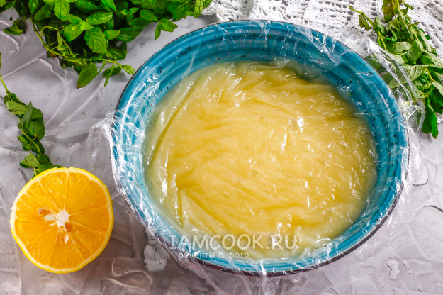 Накройте курд пищевой пленкой стык в стык и остудите в холодильнике около 1 часа - он станет более густым благодаря остывшему сливочному маслу.