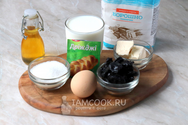 Для приготовления булочек из дрожжевого теста с черносливом (на молоке) подготовить из списка необходимые ингредиенты.
