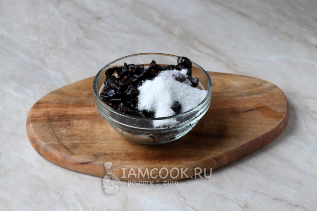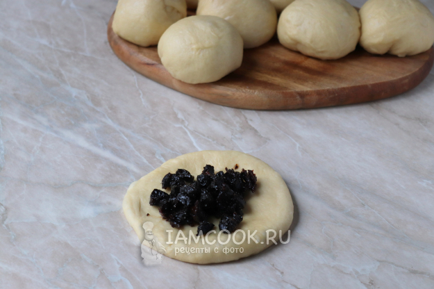 Для начинки чернослив нужно тщательно помыть. Если он слишком сухой - залить на 5-10 минут кипятком. После чего воду слить, а сухофрукты промокнуть полотенцем, чтобы избавиться от лишней влаги. Чернослив нарезать небольшими кубиками, добавить столовую ложку сахара (или по своему вкусу) и тщательно перемешать. Начинка для булочек готова.