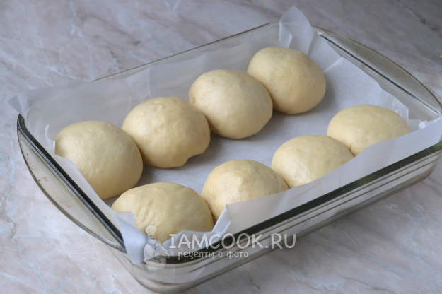 Выложить их в жаропрочную форму, застеленную пергаментом. Накрыть полотенцем и оставить на 15-20 минут для повторного подхода.