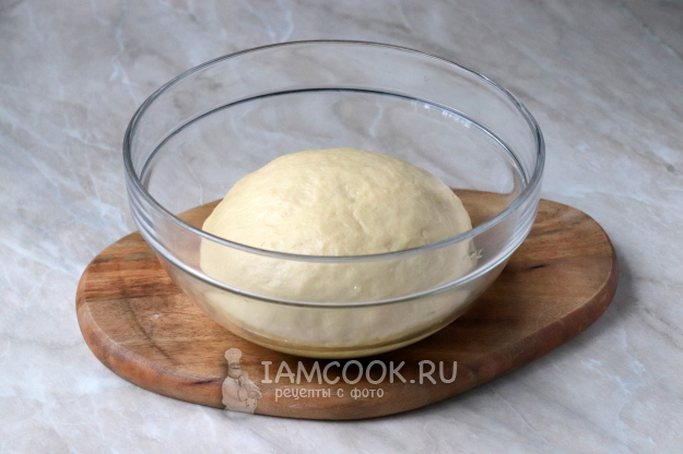 Замесить мягкое, не липнущее к рукам тесто. Округлить его и выложить в глубокую миску, смазанную тонким слоем растительного масла. Накрыть миску кухонным полотенцем и оставить в тепле на 1,5 часа.