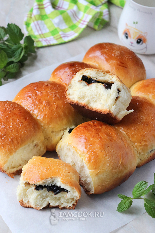 Вот и всё, вкуснейшие дрожжевые булочки с черносливом готовы. Остудите их на решётке и подавайте к столу с чашечкой ароматного чая или стаканом прохладного молока.