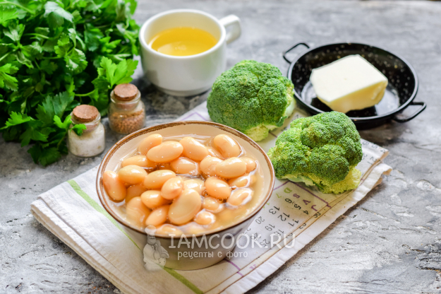 Подготовить продукты для салата из капусты брокколи с консервированной фасолью и сыром. У меня брокколи свежая, также можете взять замороженную.