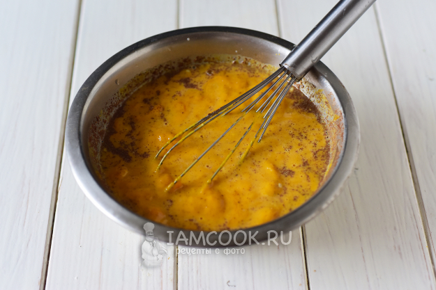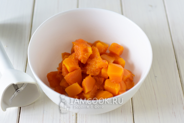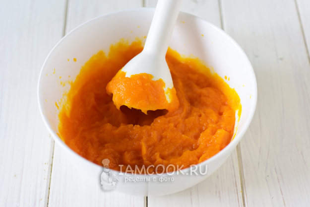 Погружным блендером пробьем тыкву до получения однородного пюре - его должно получиться 500 г.