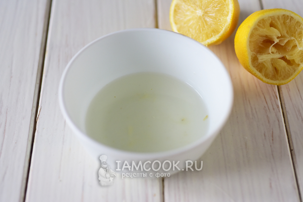 Выжать из лимона сок и тут же натереть цедру с этого же лимона на мелкой терке (цедра пойдет в начинку). Сок лимона добавить в емкость к ледяной воде и перемешать.