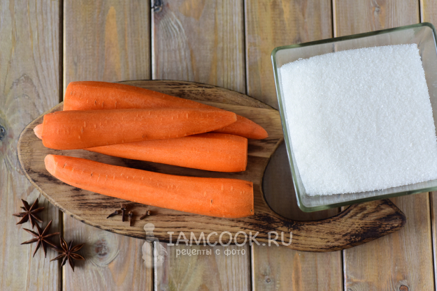Возьмите ингредиенты для приготовления цукатов из моркови в домашних условиях. Почистите морковь.
