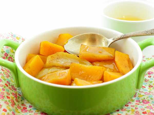Форму для запекания смазать маслом, уложить в неё нарезанную тыкву и сбрызнуть немного маслом. Поставить форму в разогретую до 200 градусов духовку и запекать 15 минут.