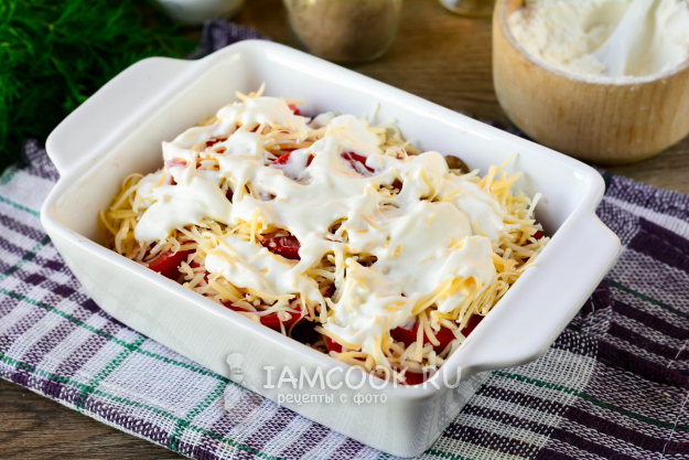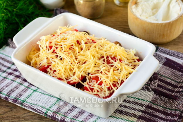 Присыпьте всё слоем натертого сыра.