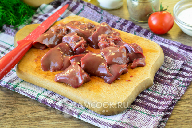 Подготовьте все компоненты для приготовления куриной печени с помидорами и сыром в духовке.