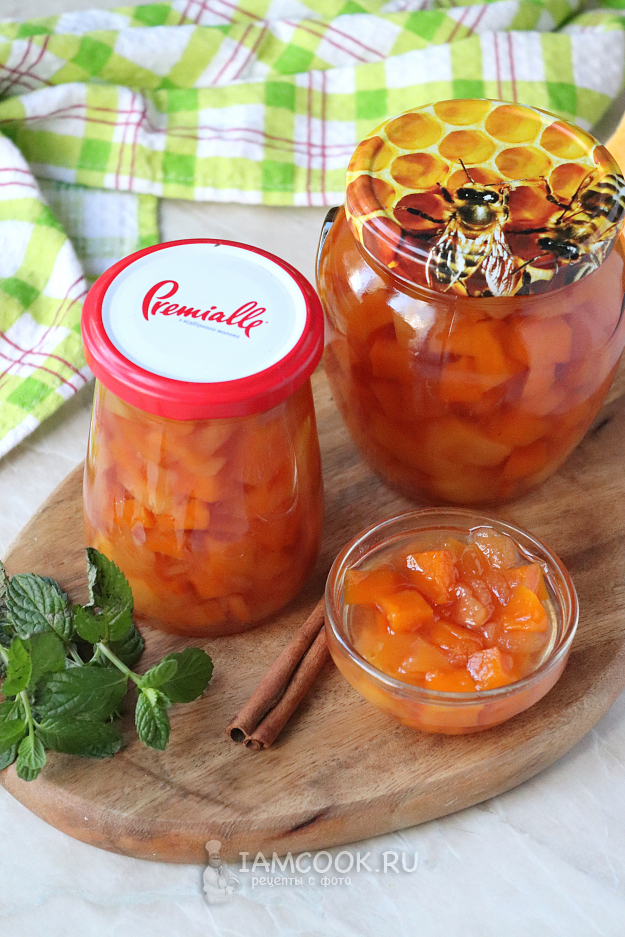 Варенье из тыквы и айвы получается очень вкусным и красивым. Благодаря длительному увариванию сироп приобретает янтарный цвет, а кусочки плодов не теряют свою первоначальную форму.