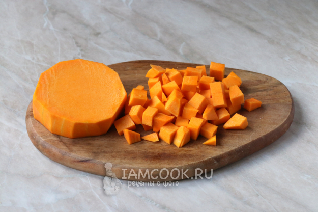 Теперь займёмся непосредственно вареньем. Тыкву очистите от кожуры и семян. Мякоть нарежьте небольшими кубиками.
