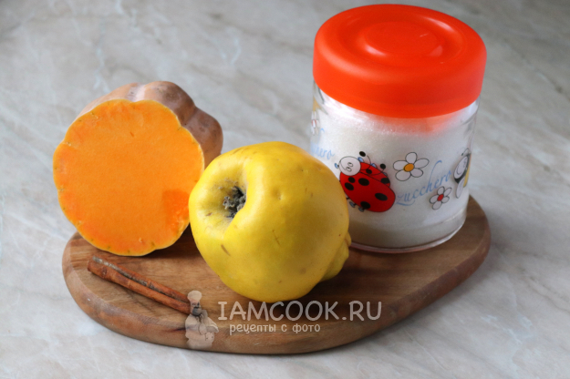 Подготовьте ингредиенты для варенья из тыквы и айвы на зиму.