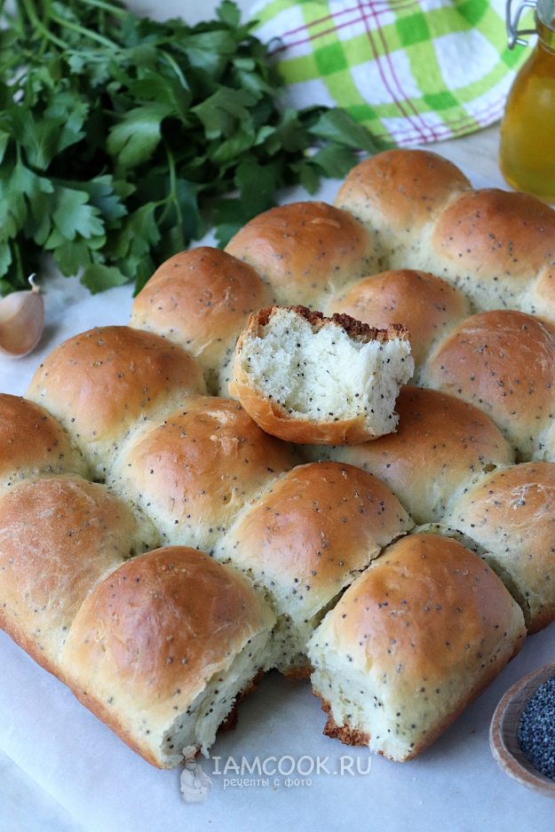 Вот и всё, вкуснейшие пампушки с маком готовы. Их можно подавать вместо хлеба к первым блюдам или же во время чаепития с мёдом/вареньем и т.п.