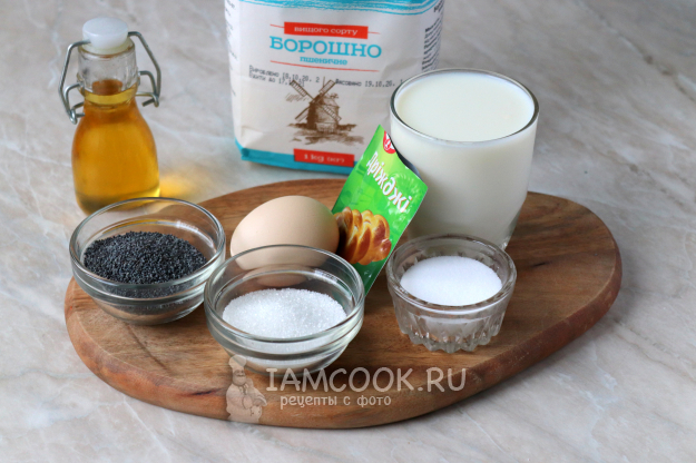 Чтобы приготовить пампушки с маком, подготовьте все необходимые продукты. Молоко подогрейте до тёплого состояния (не выше 40 градусов), а пшеничную муку просейте через мелкое сито, чтобы обогатить её кислородом.