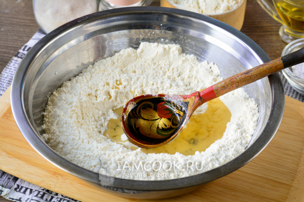 Влейте в тесто растительное масло (без запаха) и перемешайте.