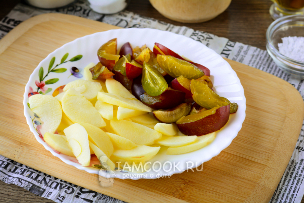 Предлагаю сочетать яблоки и сливы, будет очень вкусно и ароматно.
