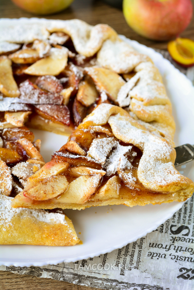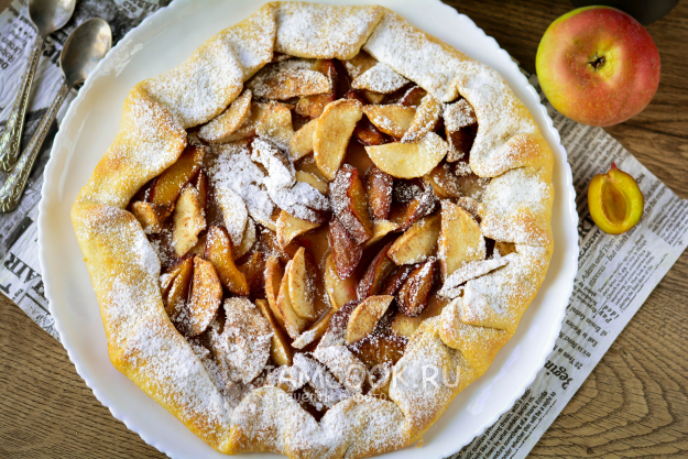 Остывшую галету присыпьте сахарной пудрой и подавайте к столу. Тонкое хрустящее тесто с запеченными фруктами - это вкусно и ароматно. Сочетание слив и яблок я всем рекомендую.