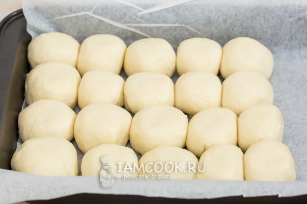 Спустя отведенное время вывалите тесто на стол, разделите на 18-20 частей.