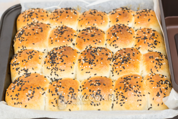 Полученные заготовки выложите швом вниз в форму, застеленную пергаментом, как можно плотнее друг к другу.