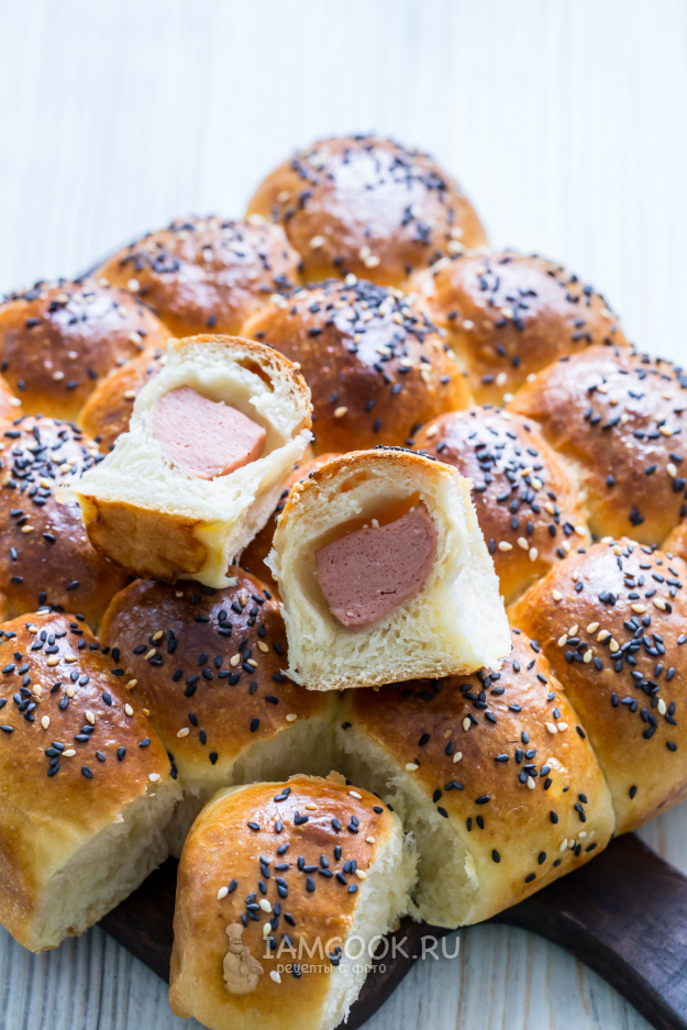 Пирог с сосисками на дрожжевом тесте готов.